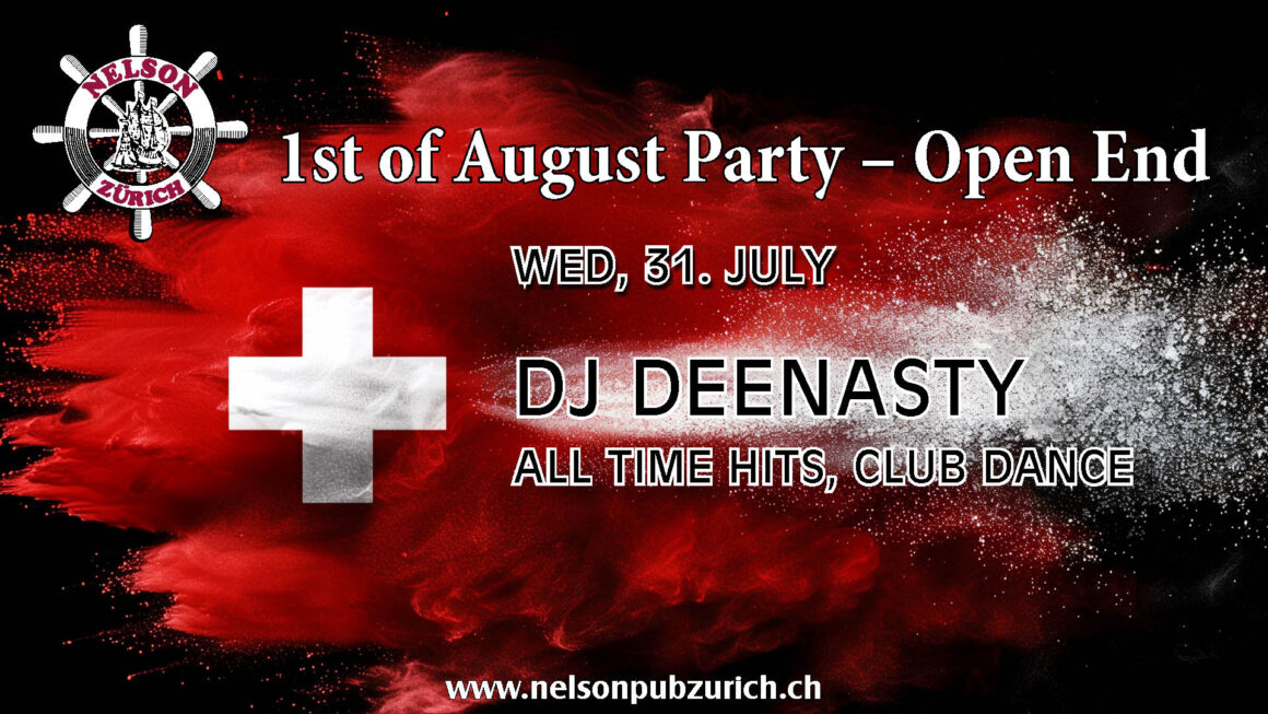 Happy Birthday Switzerland! Im Nelson Pub legen wir Wert auf Traditionen. Und die Schweiz hat davon zahlreiche zu bieten. Darum wollen wir sie heute hochleben lassen. Mit einem Geburtstagsständchen bringt DJ Deenasty um Mitternacht ein Hoch auf Helvetia aus. All Time Hits und Club Dance all Night long sorgen für Beststimmung beim Publikum. Eine ausgelassene Nacht mit open end ist garantiert.