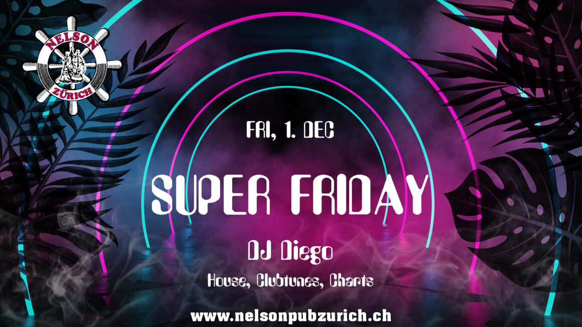 Ein letztes Mal heisst es dieses Jahr im Nelson Pub: Super Friday! Und da ist es an der Zeit, einmal danke zu sagen. Danke an alle treuen Gäste, danke an alle, die dazu beigetragen haben, dass 2023 im Nelson Pub ein weiteres unvergessliches Jahr voller zauberhafter Momente und toller Augenblicke war. DJ Diego steht hochmotiviert an den Decks und spielt nochmals House, Clubtunes und Charts.