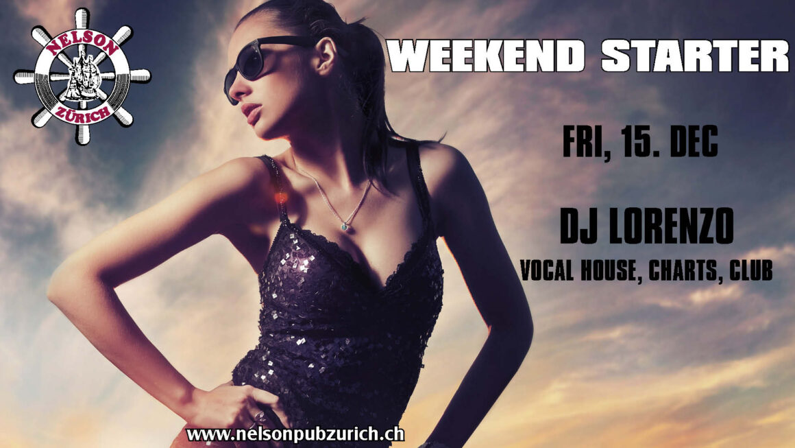Let the Weekend begin! Und dies mit einem Paukenschlag! Die Weekend Starter Sause im Nelson Pub ist in Zürich der richtige Ort, um einen perfekten Start ins Wochenende hinzulegen. DJ Lorenzo ist der Meister an den Turntables und Vocal House, Charts und Club.