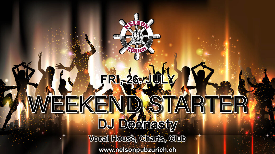 Auf ins Wochenende! Mit der Weekend Starter Sause stehen wir im Nelson Pub schon in den Startlöchern, um furios und spektakulär das Weekend einzuläuten. DJ Deenasty ist der Tausendsassa, der heute an den Decks für exzellenten Sound sorgt. Mit erstklassigem Fingerspitzengefühl lässt er einen Megahit nach dem anderen erklingen. Vocal House, Charts und Club– so viel das Ohr begehrt.