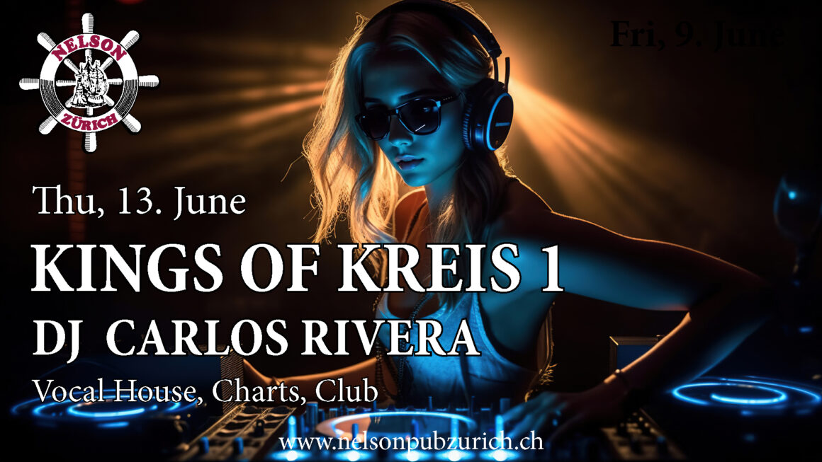 Heute Abend findet sich bei der Kings of Kreis 1 Sause im Nelson Pub einmal mehr die Crème de la Crème der Bahnhofstrasse und Umgebung zusammen. Kein Wunder, denn DJ Carlos Rivera ist für den Sound verantwortlich. Wer ihn schonmal gehört hat, weiss, warum ihm sein Name vorauseilt, ein Tausendsassa des Nachtlebens zu sein. Heute spielt er Vocal House, Charts und Club. Be prepared…