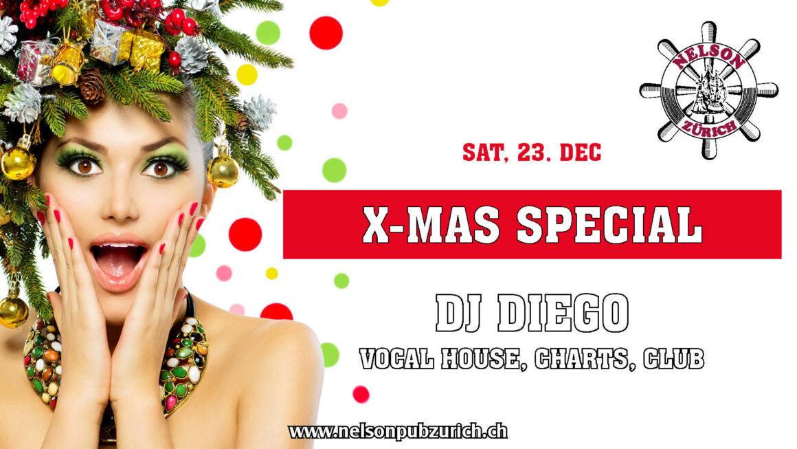 Morgen, Kinder, wird`s was geben, morgen werden wir uns freuen. Tralalalala… So singen jetzt die Weihnachtschöre aus allen Lautsprechern. Doch warum auf morgen warten? Im beliebten Nelson Pub wird in die Weihnachtstage hineingefeiert und zwar schon heute Abend und mit einer X-Mas Special Ausgabe. DJ Diego steht dazu an den Decks und heizt mit Vocal House, Charts und Club so richtig ein.