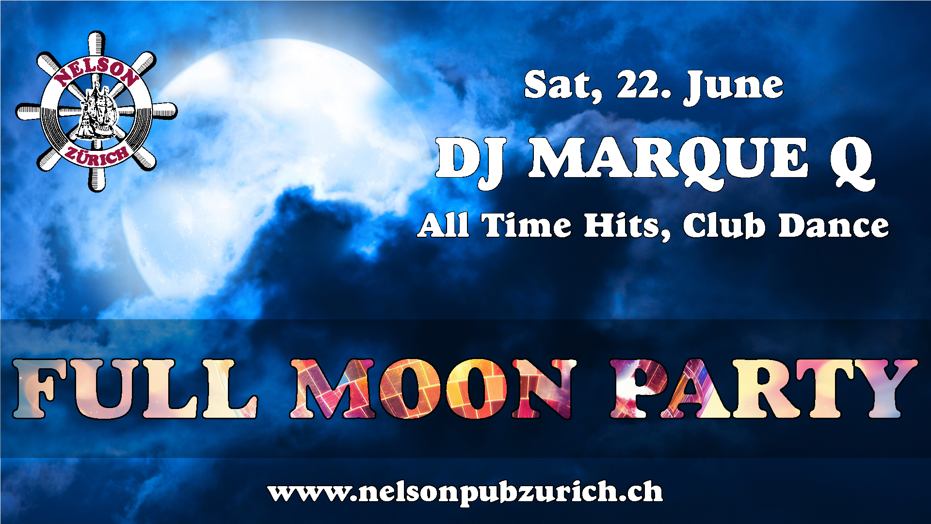 WeiterlesenLine Up: DJ Marque Q Soundstile: All Time Hits, Club Dance Heute ist Vollmondnacht! Und das bedeutet, dass im Nelson Pub wieder die Glocken schlagen, um die Full Moon Party einzuläuten. Denn mit seinem Schwarm bei Vollmond tanzen, soll ja bekanntlich Glück in der Liebe bringen. Wie stets wird in der stimmungsvollen Location an der Beatengasse 11 ein grandioser Abend erwartet. DJ Marque Q spielt All Time Hits und Club Dance – all Night long.