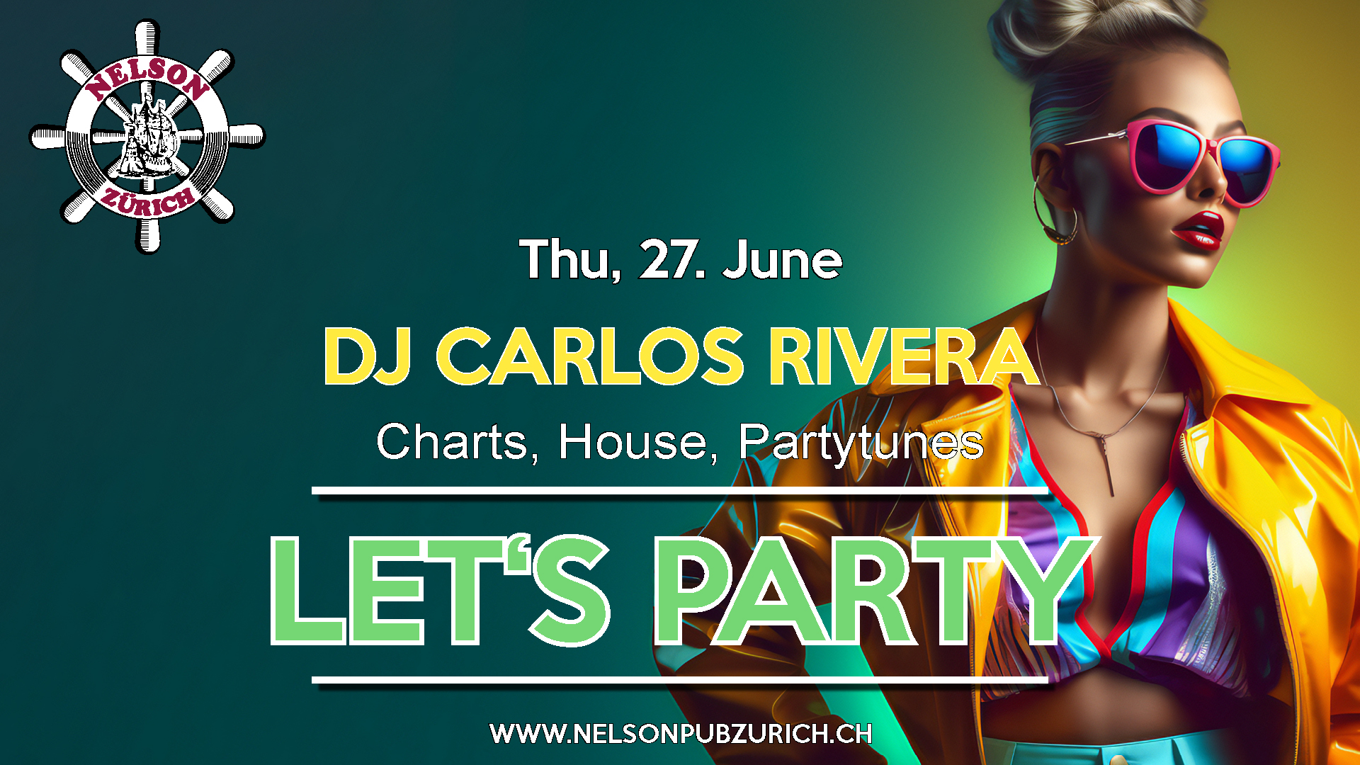 WeiterlesenLine Up: DJ Carlos Rivera Soundstile: Charts, House, Partytunes Let’s Party! Im Nelson Pub läuft die Partycrowd zu Hochtouren auf. Denn hier weiss man, was exzellentes Feiern bedeutet und wie man unvergessliche Momente schafft. Mit Freunden, Kollegen und der ganzen Clique wird hier abgerockt und durchgemacht. DJ Carlos Rivera liefert dazu den Sound, heute Charts, House und Partytunes.