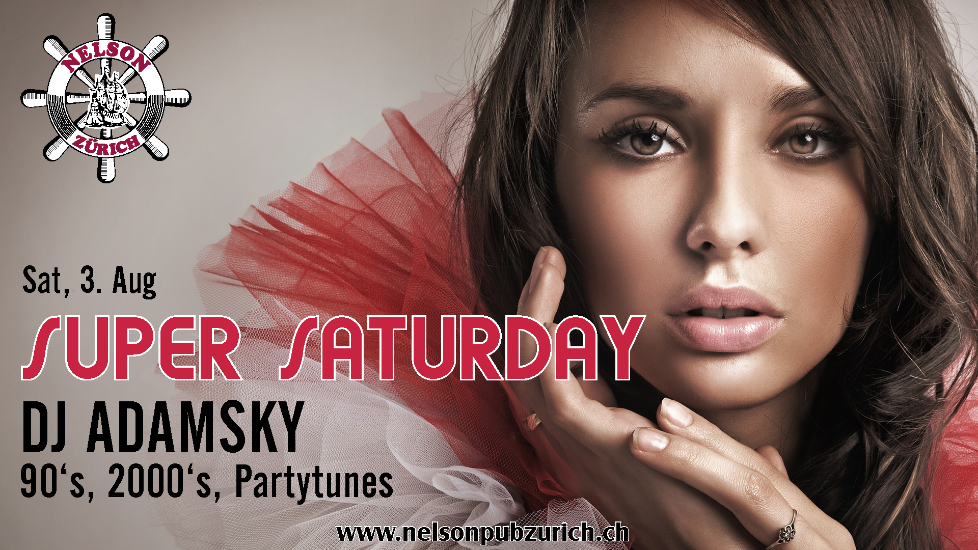 WeiterlesenLine Up: DJ Adamsky Soundstile: 90’s, 2000’s, Partytunes Es ist Zeit für den Super Saturday im wunderbaren Nelson Pub. Und hier wird einiges geboten: DJ Adamsky spielt 90’s, 2000’s und Partytunes in erstklassiger Manier, die Barcrew rührt und schüttelt dazu die zauberhaftesten Drinks und der Flirtfaktor unter den Anwesenden ist jedes Mal - extremly high.