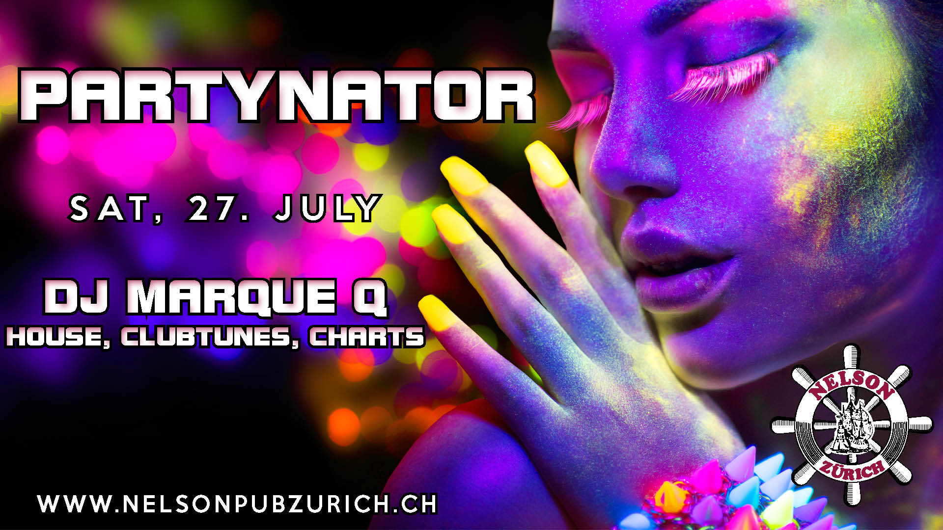 WeiterlesenPartynator Line Up: DJ Marque Q Soundstile: House, Clubtunes, Charts Der Partynator ist der Motor des Nachtlebens. Er kriegt nie genug vom Tanzen, Flirten und Feiern. Ihm widmen wir im Nelson Pub heute Abend unseren Event. Hier kommen alle auf ihre Kosten, die es zu schätzen wissen, wenn eine satte Party geboten wird, die in jeder Hinsicht alle Erwartungen erfüllt. Beste Musik von DJ Marque Q, abgemixt aus House, Clubtunes und Charts, rundet den Anlass ab.